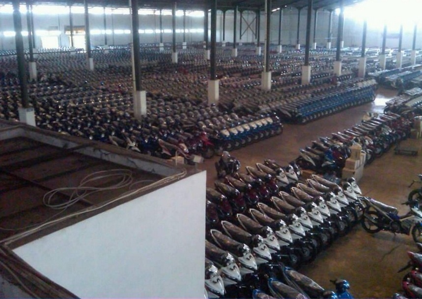 Salah satu daerah yang juga mengalami kemacetan distribusi motor yamaha adalah sumatera selatan. Hal ini terlihat dari banyaknya stok yang masih menmpuk di gudang, belum tersalurkan ke diler-diler (mungki stok di diler masih banyak). Sampai-sampai salah seorang (mungkin karyawan yang ada di sana) mengeluh :
