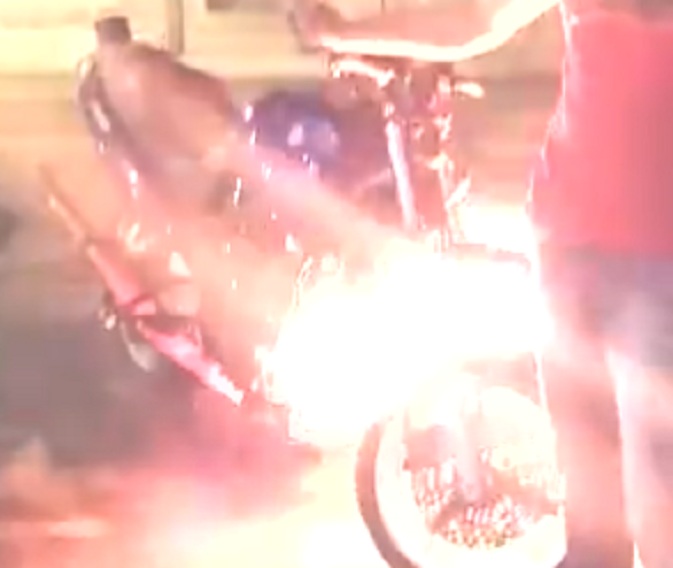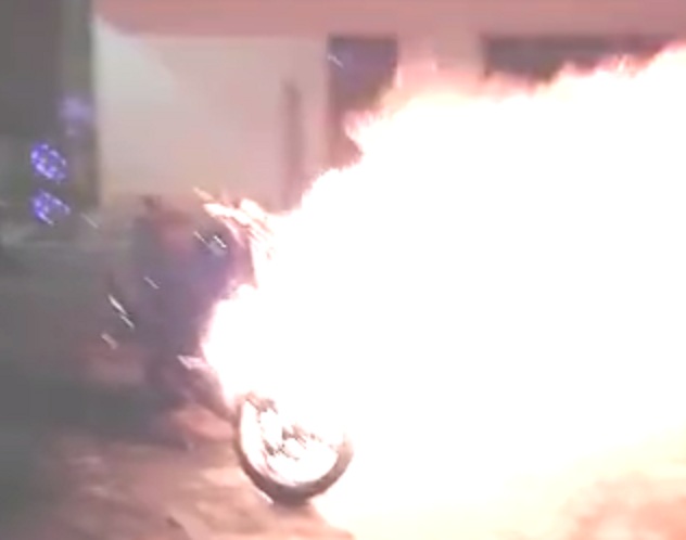 Berikut ini salah satu penyebab terbakarnya motor yang tidak diawali dari kerusakan. Semuanya berjalan normal bahkan performanya bisa dikatakan jempolan. Hal ini terdengar dari suara engine nya dan juga terlihat dari api biru yang sedikit keluar di knalpot. Tapi pada akhirnya motor terbakar, prediksi motogokil karena panas yang berlebihan (bahkan sangat berlebihan). Mari kita saksikan cuplikan kejadiannya.