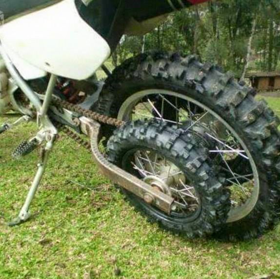 Memang modifikasi ini dikhusukan untuk motor garuk tanah, alias motocross. Akan tetapi bisa kok diaplikasikan pada motor biasa. Jadi di bagian kiri-kanan ban belakang ditambah ban ukuran yang lebih kecil, sehingga seakan-akan cornering ditopang oleh ban (1 depan, 2 belakang). Pastinya jauh lebih nge-grip dibandingkan konstruksi aslinya.