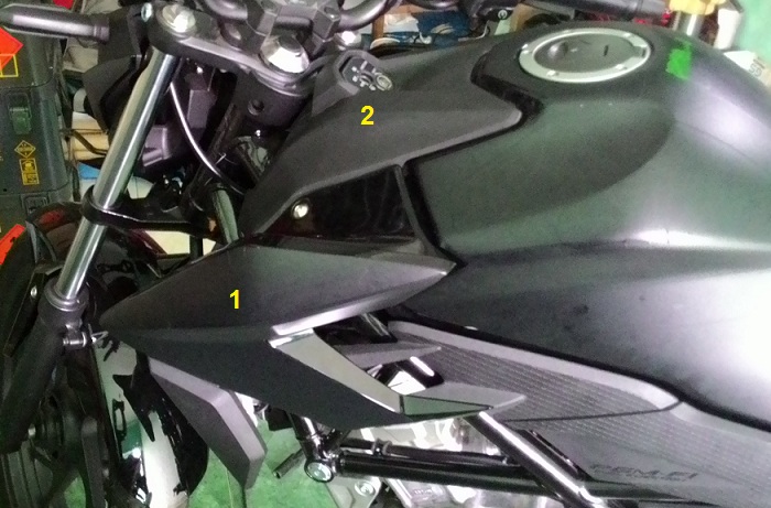 Seperti pada gambar judul, cover bagian depan tangki bensin ada 3 buah, yaitu :