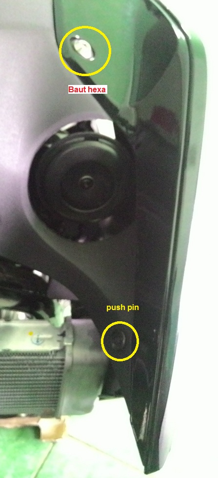 Jadi langkah awal untuk membuka shroud adalah membuka baut hexa dan juga push pin. Posisi baut dan push pin ada di bagian depan dekat sok depan.