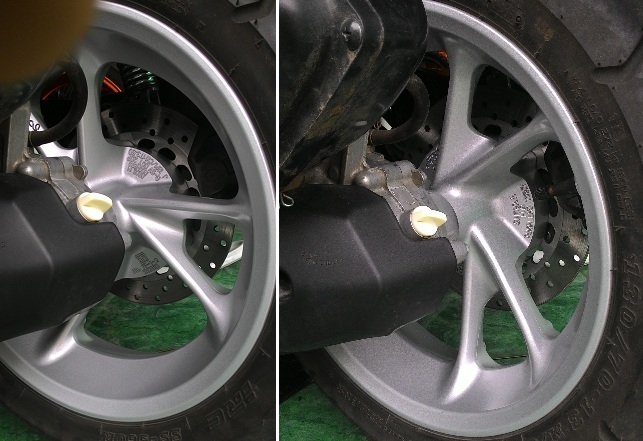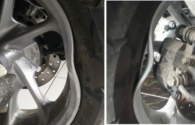 Ternyata velg-nya speleng bro, walaupun tidak parah. Dan bukan hanya velg yang speleng, cakram belakang juga speleng. Untungnya sang owner/rider tidak mempermasalahkan, jika tidak mengganggu kenyaman dan handling.