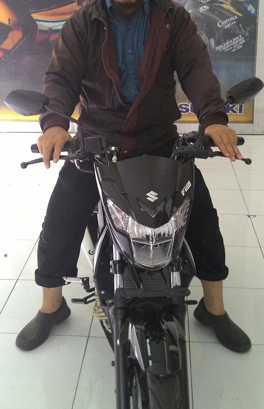 Ternyata ada bro, nasib sedang beruntung. Tidak lama kemudian ane dudukin tuh satria fu 150 fi, dan rasanya…enak bro, pas banget dengan postur ane (tb 165 cm). Nggak nunduk juga nggak bungkuk, pas dah.