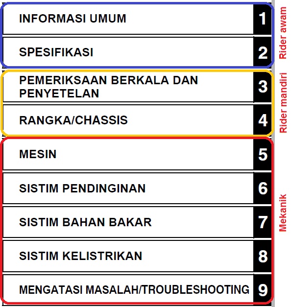 3. Rider yang memiliki kemampuan mekanik, adalah rider yang memahami secara detil semua bagian motor dari 1 sampai 9.