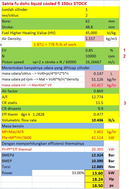 Dengan mengecilnya rugi-rugi, maka semakin besarlah power yang keluar. Sebelumnya dengan rugi-rugi 33% powernya hanya 18.5 ps, sekarang dengan rugi-rugi 15.18 % powernya menjadi 23.4 ps. Bener-bener signifikan peningkatan powernya, yaitu sekitar 27%. Ingat ya peningkatan power ini tanpa oprek engine.
