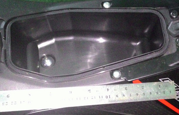 Ada kemungkinan konsumen ada yang memilih satria fu 150 fi , hanya karena ada bagasinya di depan. Karena bagasi seperti ini tidak didapati pada rival-rivalnya (sonic150r dan mx king). Tapi sebelum menyesal setelah mengetahui berapa ukuran bagasinya, yang terlihat imut, yok kita ukur berapa panjang dan lebarnya.