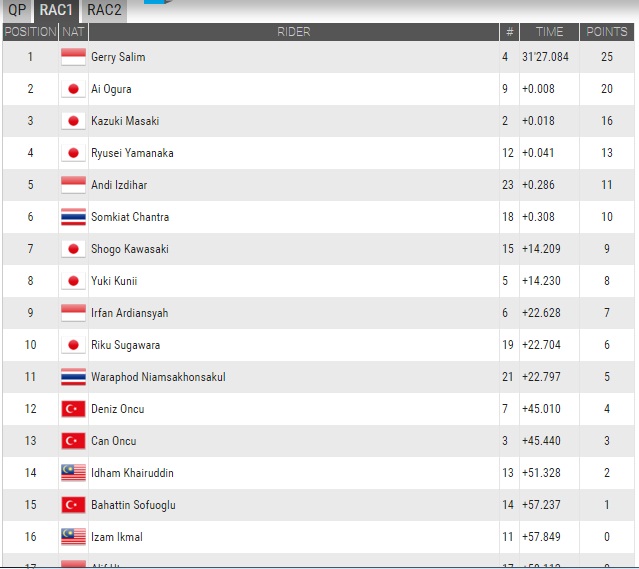 Berikut ini capaian gerry dan andi pada race-1 dan race-2 serta hasil sementara pembalap SAATC 2016
