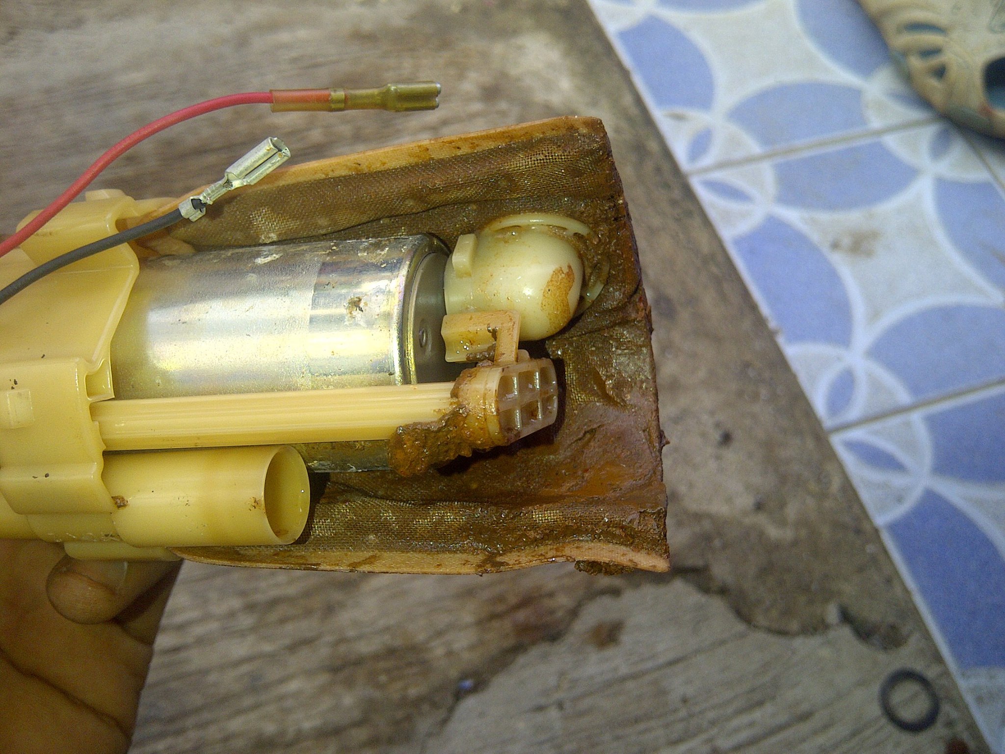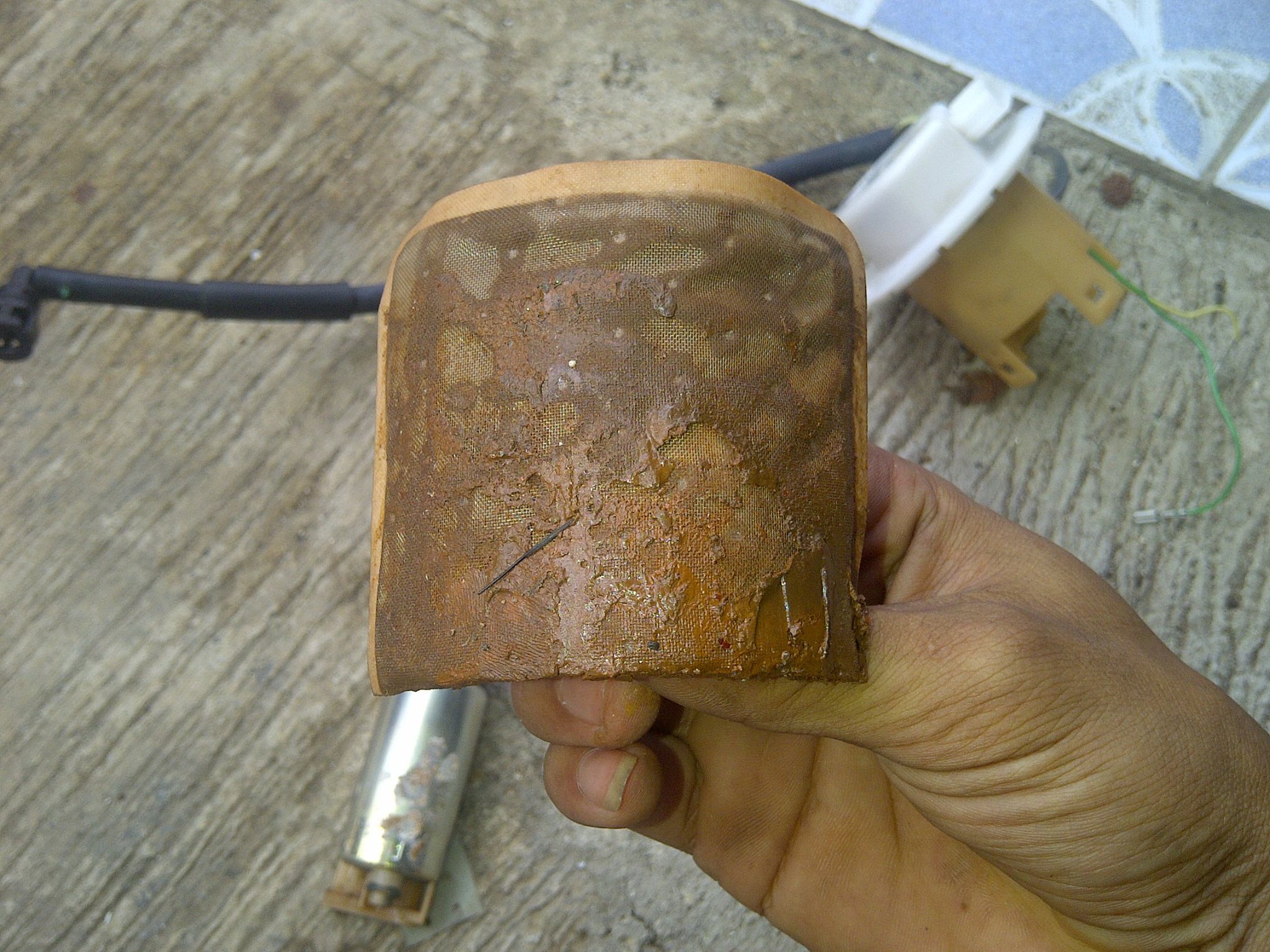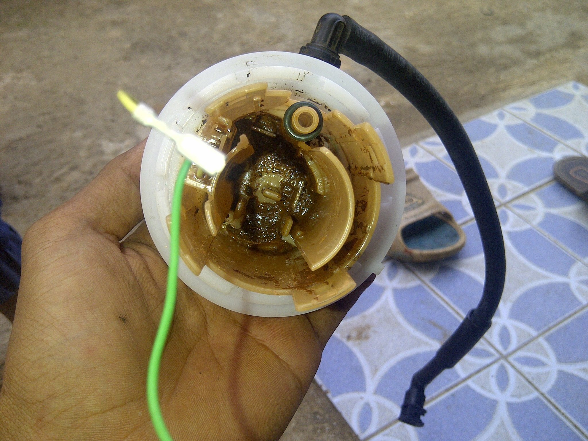 Fuel pump juga terlihat sangat kotor. Berarti bagian bawah dari tangki bensin sudah kotor sekali.