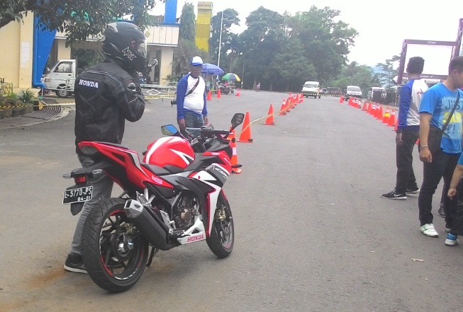 Siang tadi sempat hadir di acara test ride all new cbr150r di parkiran stadion kanjuruhan malang. Ternyata yang daftar test ride lumayan banyak, sudah disediakan 4 kursi, masih juga antri. Motogokil ikut daftar dan nonton yang test ride duluan, …..jiaaa trek-nya pendek banget, nggak sampai 100 meter, mana bisa ngetes performa nih?