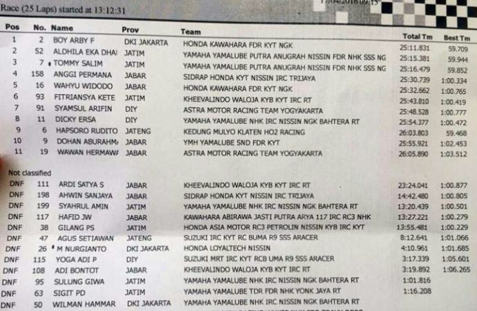 Berikut ini hasil dari balapan mp1 motorprix region-2 putaran-1 di malang