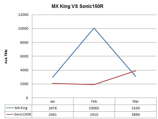 Sementara rival terberatnya yaitu sonic150r justru bertahan, naik sedikit secara normal dan lumayan lebih tinggi dari mx king.