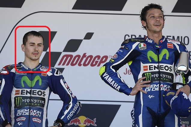 Barangkali itu pula yang membuat lorenzo kecewa, sangat jelas terlihat di wajahnya baik saat selesai race, maupun saat di podium. Maklum sebelumnya ia tidak terkalahkan di jerez, yang kemudian harus menelan pil pahit….tidak mampu mengejar valentino rossi dari awal sampai akhir. Padahal motornya sama, sama-sama yamaha m1, tapi terlihat sangat inferior baik di lintasan lurus maupun di tikungan.