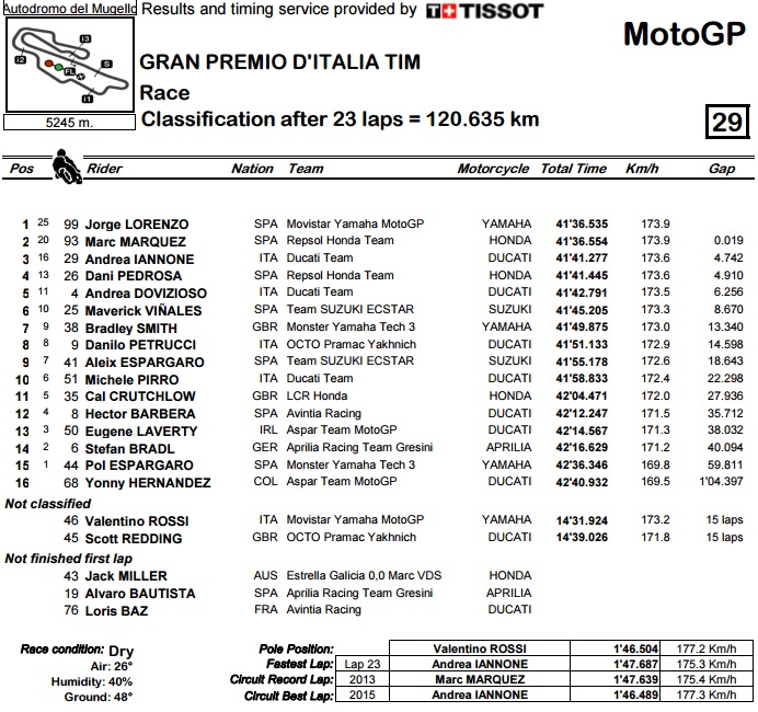 Berikut ini hasil race tadi sore di mugello italia 2016.