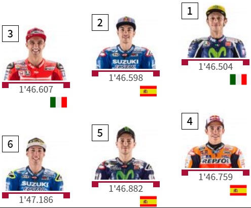 Memang hasil di mugelo, italia ini sangat spesial bagi vr46 dan juga pendukungnya. Setelah mempecundangi pasukan spanyol di jerez sebulan yang lalu, tentunya jangan sampai ia dipencundangi oleh rider spanyol justru di kandangnya sendiri. Dan melihat hasil latihan bebas (free practice) sampai kualifikasi (qualification), performa vr46 terlihat “stabil meningkat”. Sedangkan rider lainnya, naik turun, menandakan motornya masih bermasalah.