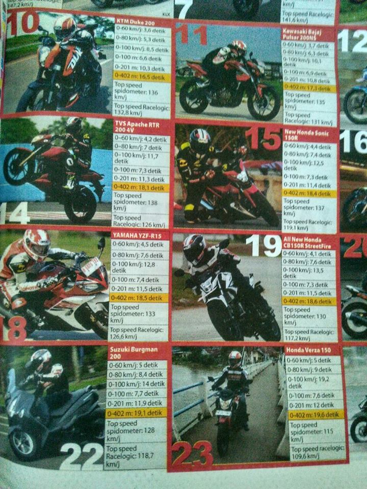 Tapi BTW, Xabre yang jelas2 punya bobot lebih berat, pake up side down dan pake ban gambot kok drag 402m & top speed malah lebih tinggi dibanding New CB150R & NVA ya?
