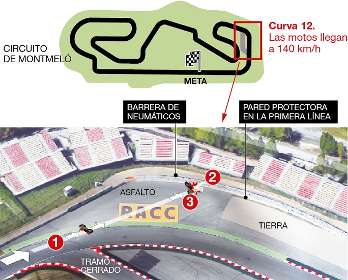 Sebelumnya Luis Salom (moto2) mengalami kecelakaan fatal pada fp2, yang pada akhirnya merenggut jiwanya. Kecelakaan tersebut terjadi di tikungan ke 12 (layout awal), dengan sangat kencang crash kemudian menabrak penghalang di pinggir sirkuit.