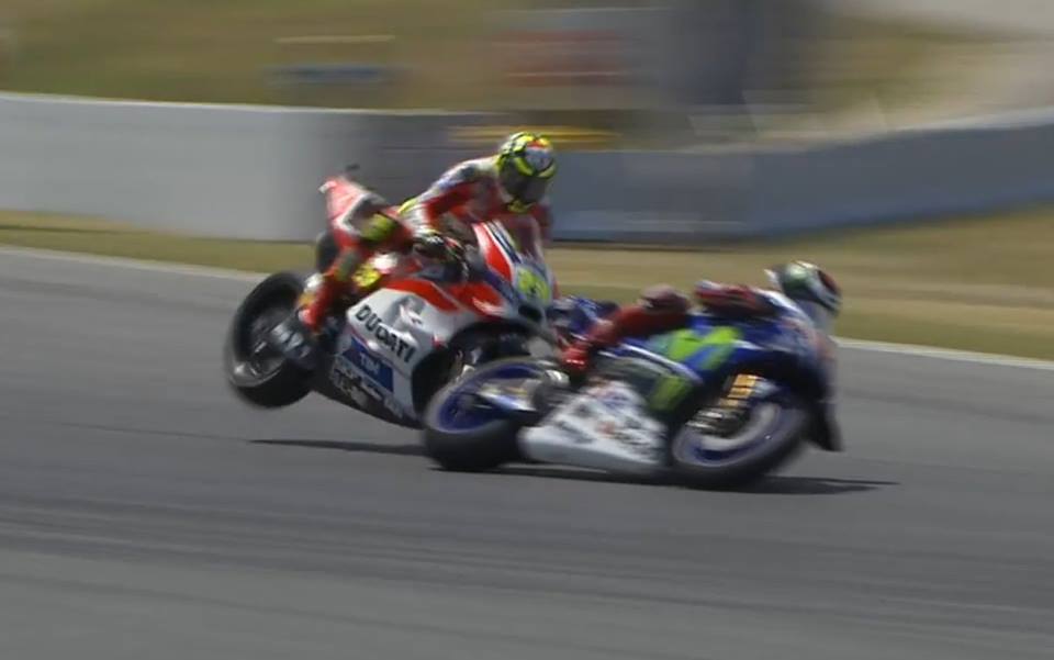 3. Andrea iannone telah melakukan kesalahan fatal, menusuk racing line dalam jl99 dari belakang. Sehingga terjadilah tabrakan yang cukup fatal yang membuat jl99 sekaligus dirinya dnf. Disinyalir akan terjadi perang antara kubu lorenzo dengan kubu iannone