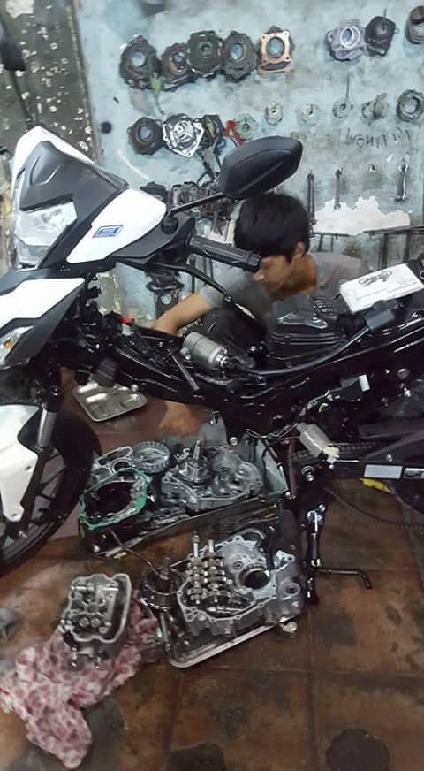 Sepertinya motor winner150r ini baru turun dari dealer, langsung dibongkar, terlihat belum ada plat nomornya (atau sudah ada tapi difoto ketika sudah dilepas).