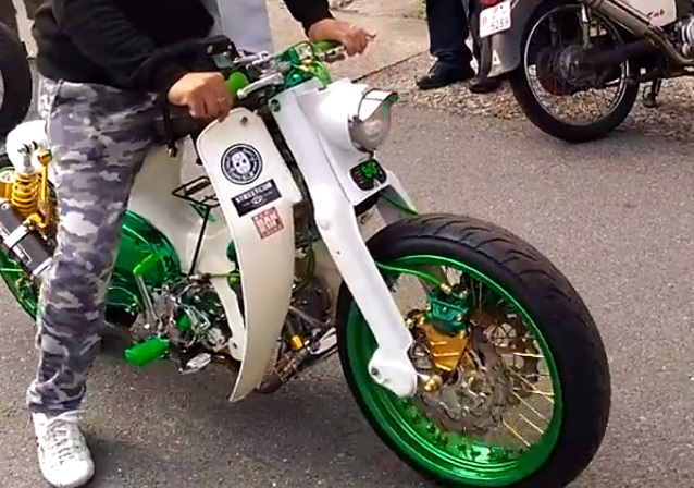Barangkali owner di sana merasa sangat kurang puas dengan performa supercub ini (maklum cuma 50, 70 cc). Mau beli moge juga selain mahal pajaknya juga gede. Akhirnya si pitung (pitung puluh/70) diakali supaya tetep tampak seperti motor kecil supercub, tapi bertenaga besar, dipersenjatailah si pitung dengan turbo.