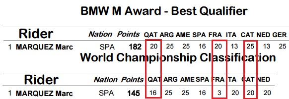Terlihat beberapa rekor terahir ditorehkan marquez di sirkuit ini. Akan tetapi ternyata keberhasilan marquez meraih pole position tidak selalu diahiri dengan kemenangan. Perhatikan raihan posisi kualifikasi dan hasil race marquez pada beberapa race sebelumnya.