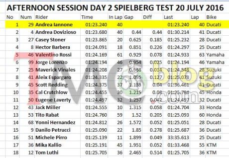 Kemarin casey stoner menempatkan dirinya di urutan ke-4 saat test di sirkuit red bull ring austria. Saat itu stoner lebih lambat dari 3 pembalap ducati lainnya, yaitu dovozioso, iannone dan redding. Berikut ini catatan waktunya