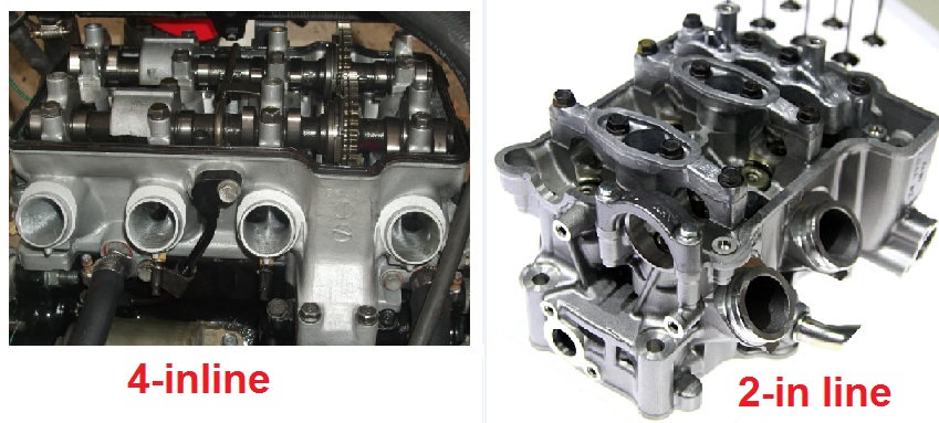- Harganya pasti jauh lebih mahal, dibandingkan mesin 2 silinder. Karena mulai dari crankshaft, conrod, piston, silinder, head beserta isinya (klep, per klep, camshaft dan lain-lain), intake-injector beserta tb dan sensor, header knalpot, semuanya dua kali lipat mesin 2 silinder.