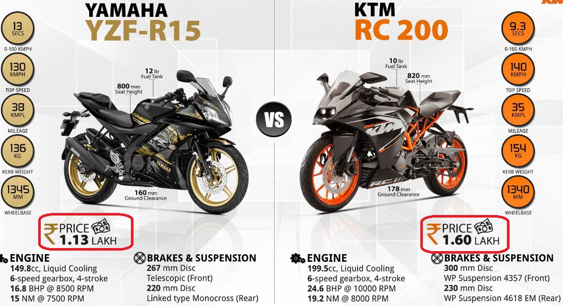 ktm rc200 vs yamaha r15 price