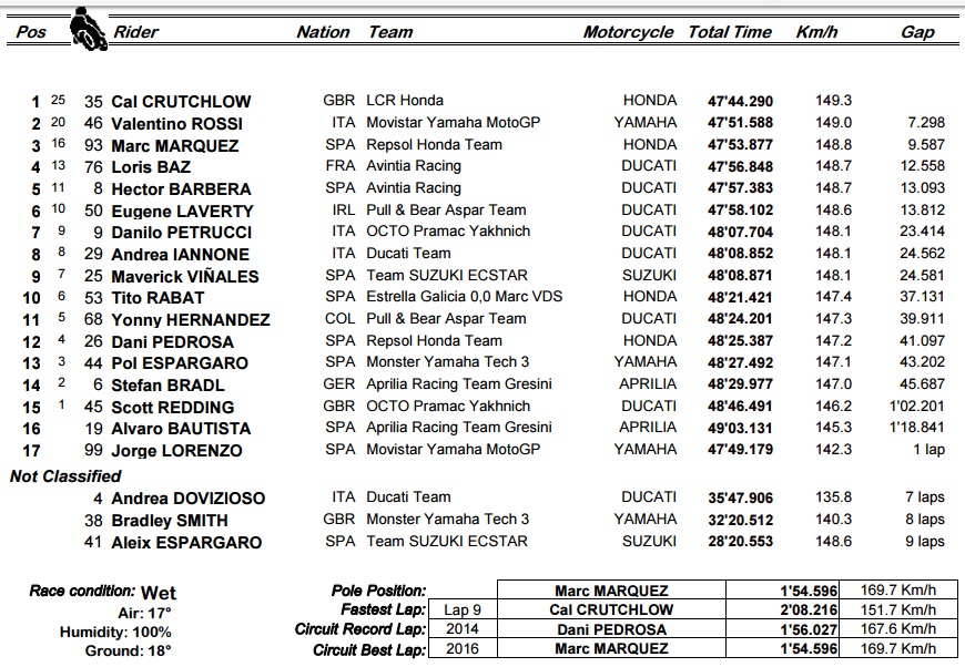 Motogp 2016 GP brno race result