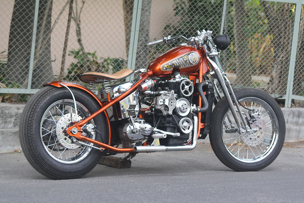 Akal-akalan engine motor dipakai di mobil atau sebaliknya, engine mobil dipasang di sasis motor, sudah lama di Indonesia. Jadi modifikator nasional nggak kalah jago, dibandingkan modifikator luar negeri. Inilah penampakan moge bermesin daihatsu hijet1000.