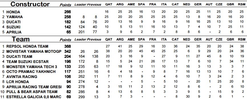 Berikut ini hasil race di san marino beserta klasemen sementara pembalap, konstruktor dan tim