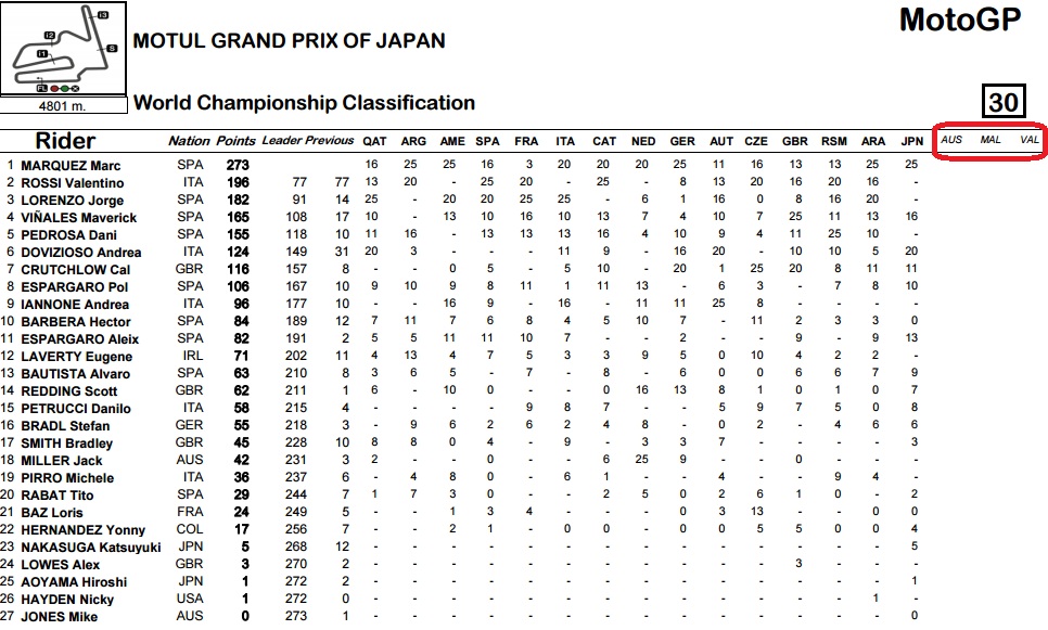 Berikut ini hasil balapan tadi siang di motegi jepang…