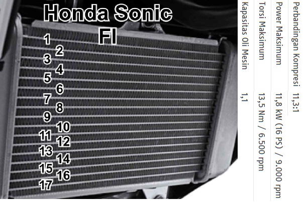 Salah satu bagian penting dari liquid cooling system adalah radiator. Dan menjadi suatu yang umum, bahwa jika performa besar, maka suhu semakin tinggi, perlu pendinginan yang ekstra dengan dimensi radiator yang lebar. Jadi kenaikan performa identik dengan kenaikan suhu dan kenaikan dimensi radiator.  Berikut ini motogokil urutkan dimensi radiator dari motor dengan performa paling rendah.