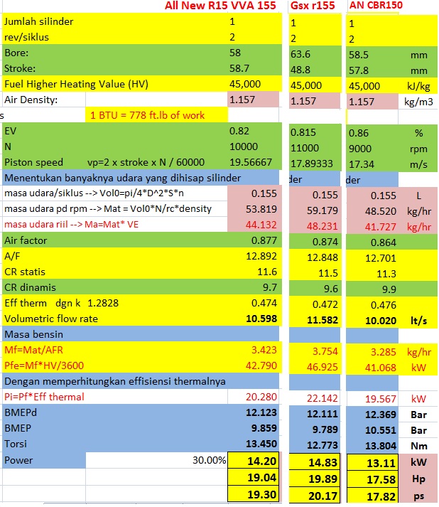 5. kayanya ga fair deh kalau bilang power cbr155 jauh lebih tinggi dari r155, soalnya ve pasti berkurang seiring peningkatan rpm. kalau mau dikomparasi bukan sebaiknya ve disamakan (0.82)?