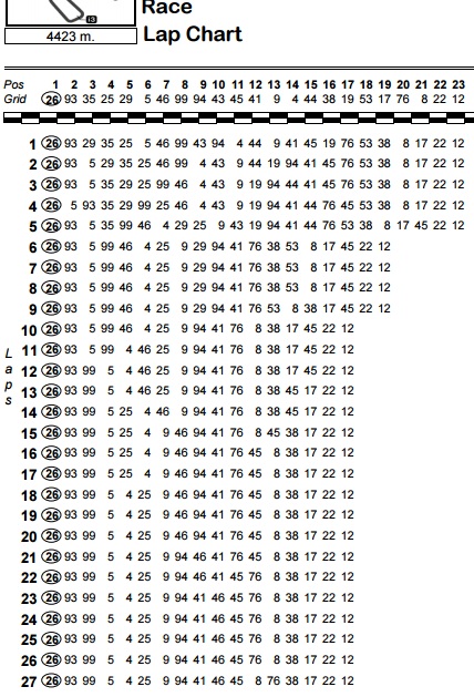 Bagi yang tidak sempat nonton balapan, lap chart berikut bisa menunjukkan kondisi para pembalap perlap…