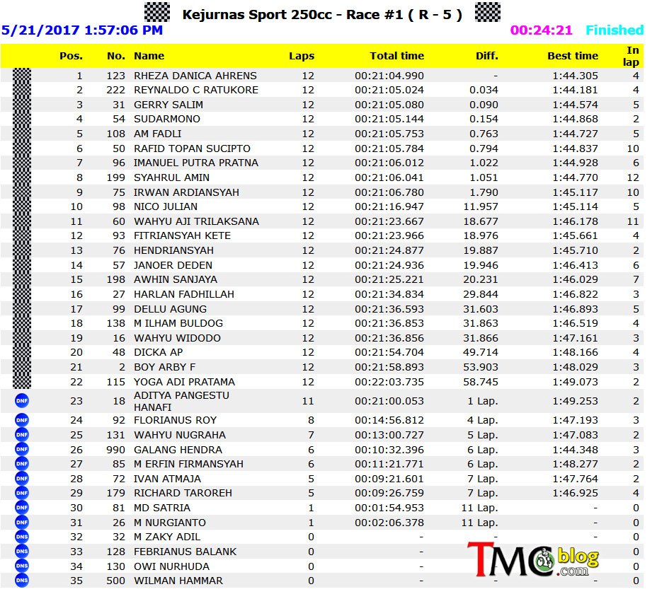 Jika dilihat siapa yang podium, ya cuma 3 pembalap yang sama, yaitu ratukore, denica dan salim, cuma pindah posisi. Selisih waktunya juga sangat tipis, tidak sampai 0.1 detik, tipis banget. Jadi persaingan antara cbr250rr dan r25 kali ini benar-benar ketat.