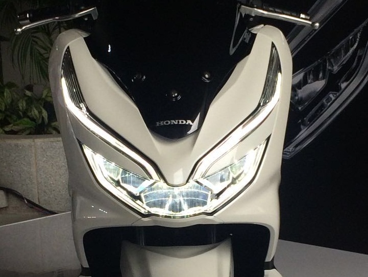 Sekilas melihat bagian depan pcx 150 lokal ini kok lumayan sangar, mirip kepala alien. Lonjong dan panjang dengan mata sipit. Barangkali kalau ada yang ingin modif kepala alien sudah tinggal rubah sedikit saja.