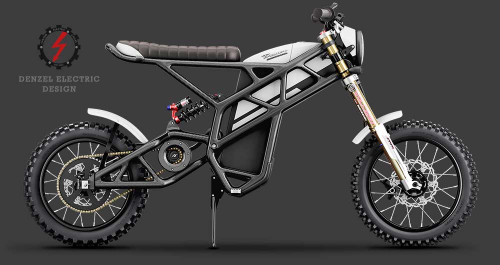 Kali ini denzel membangun electrik motorcycle bergaya scrambler dengan disain sendiri yang nyentrik alias unik. Bahan dari frame (rangka) nya terbat dari serat karbon, oleh karena itu sepeda motor ini dinamakan denzel electric fibre carbon scrambler. Lihat penampakan sepeda motor yang mirip sepeda bmx di atas, unik kan.