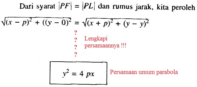 Kemudian perhatikan titik L, P dan F dan tentukan jarak (panjang garis) PF dan PL.